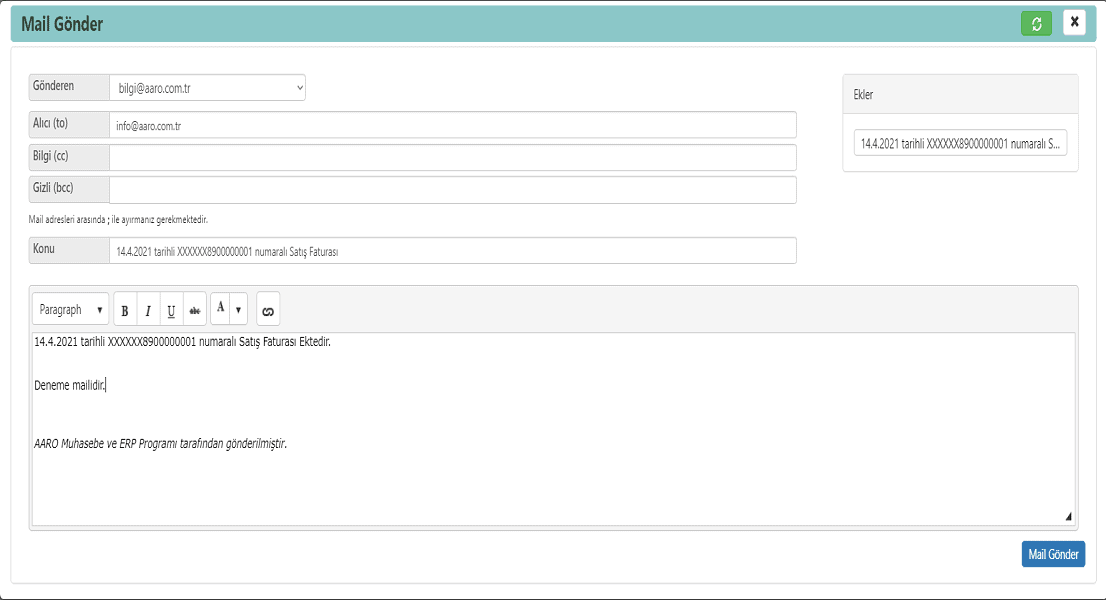 Mail uygulamaları ve Aaro arasında sürekli gel git yapmadan Aaro üzerinden mail atarak hem zamandan tasarruf edin hem iş yükünden kurtulun.